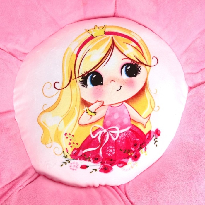 Большая мягкая подушка в форме цветка с милым принтом станет функциональным украшением для комнаты маленькой принцессы.
