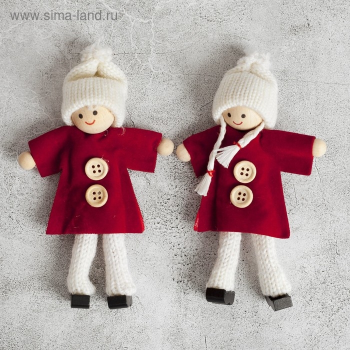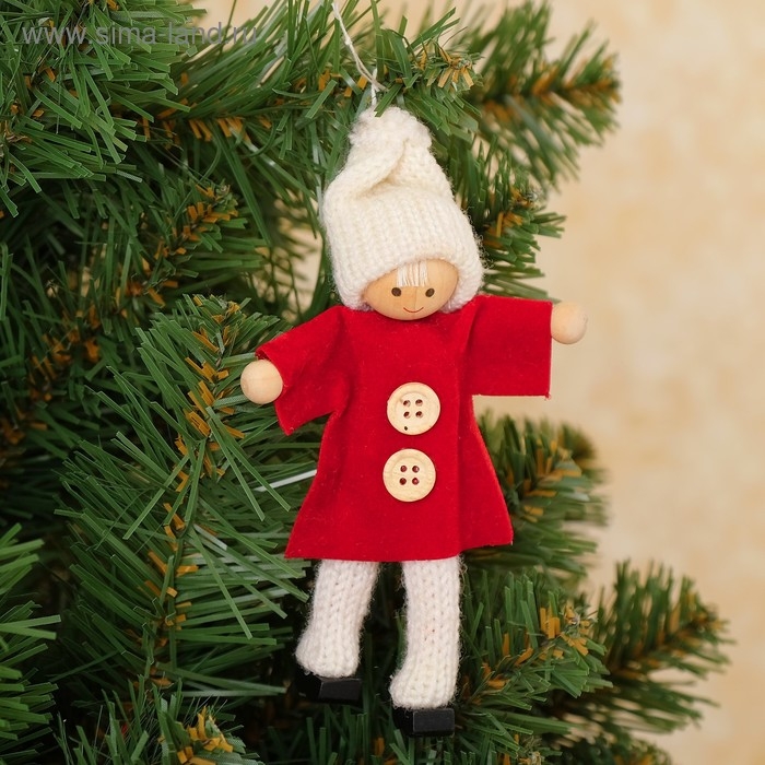Интерьерная подвеска выполнена в виде миниатюрной куколки в зимнем наряде.