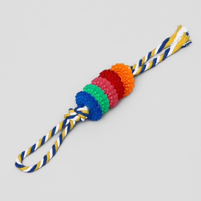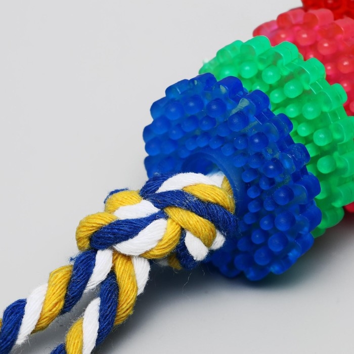 Игрушка жевательная "Шестерёнка на канате", 32 см, диаметр колец 5 см, микс цветов