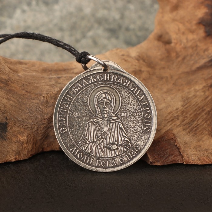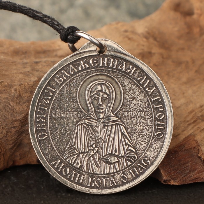 Икона-подвеска Святая Блаженная Матрона и Ангел хранитель, 12г, 33х30 мм, юв. мельхиор