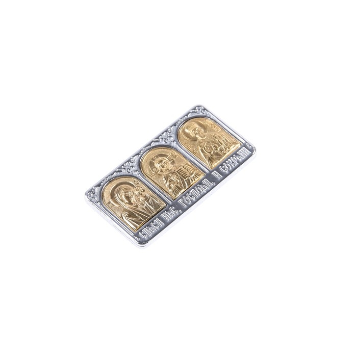 Икона в машину, триптих, мельхиор, метал, 4,2 х 2,2 см