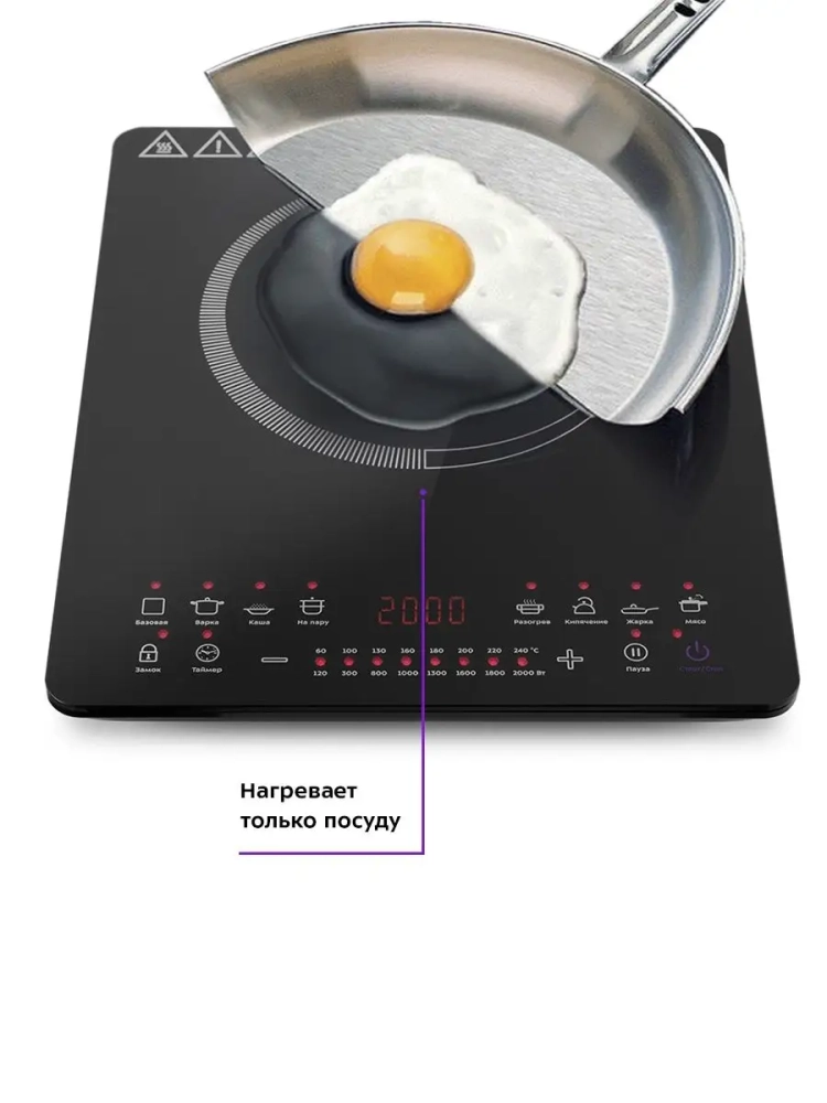 Если посуда не подходит для индукционной плиты или диаметр дна слишком мал, то плита будет подавать звуковой сигнал, и нагрев осуществляться не будет.