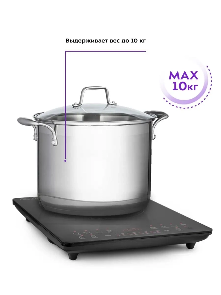 Для индукционной плиты подходит посуда с дном из ферромагнитных материалов: стальная, чугунная, эмалированная посуда, посуда из нержавеющей стали, а также любая другая, предназначенная для индукционного нагрева (обычно такая посуда имеет специальную маркировку). Подходящую посуду легко определить с помощью магнита — если он примагничивается к дну, такая посуда, скорее всего, подойдет. Однако тест с магнитом не дает 100% гарантии того, что посуда подойдет, ориентируйтесь на информацию от производителя посуды. Для удобства в комплекте с плитой идет подарочный магнит с фирменным логотипом, которым вы можете воспользоваться для проверки.
