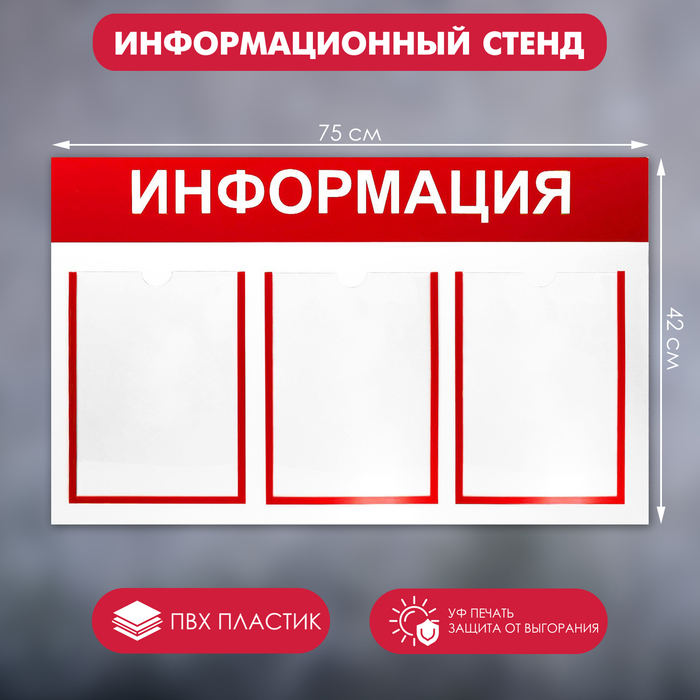 Информационный стенд «Информация» 3 плоских кармана А4, цвет красный