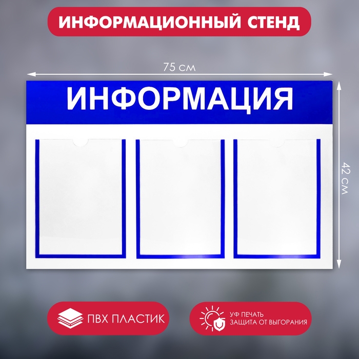 Информационный стенд «Информация» 3 плоских кармана А4, цвет синий