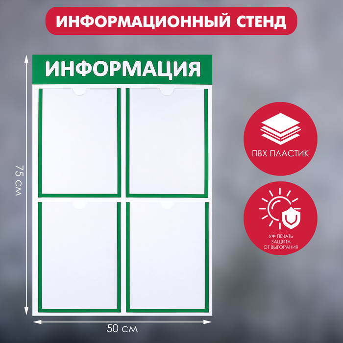 Информационный стенд «Информация» 4 плоских кармана А4, цвет зелёный