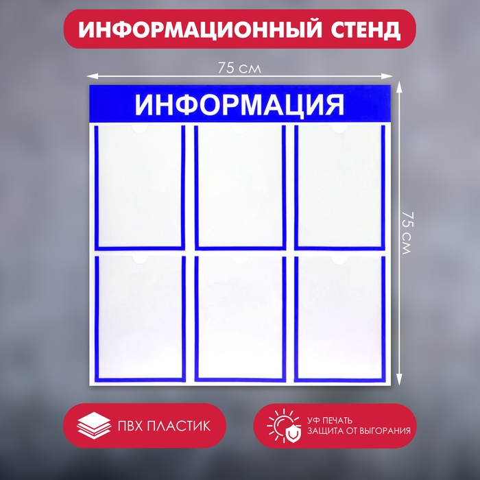 Информационный стенд «Информация» 6 плоских карманов А4, цвет синий