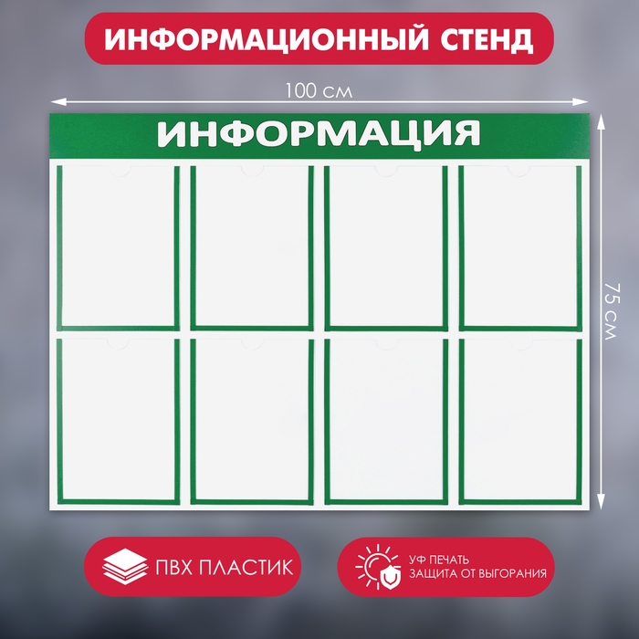 Информационный стенд «Информация» 8 плоских карманов А4, цвет зелёный