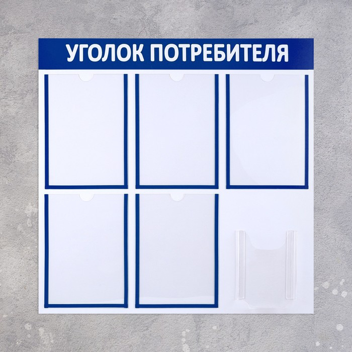 Информационный стенд «Уголок потребителя» 6 карманов (5 плоских А4, 1 объёмный А5), цвет синий