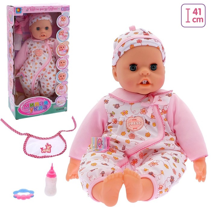 Интерактивный пупс «Крошка», 4 функции, звук, двигается язык, растут зубки, цвет розовый