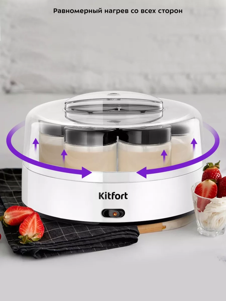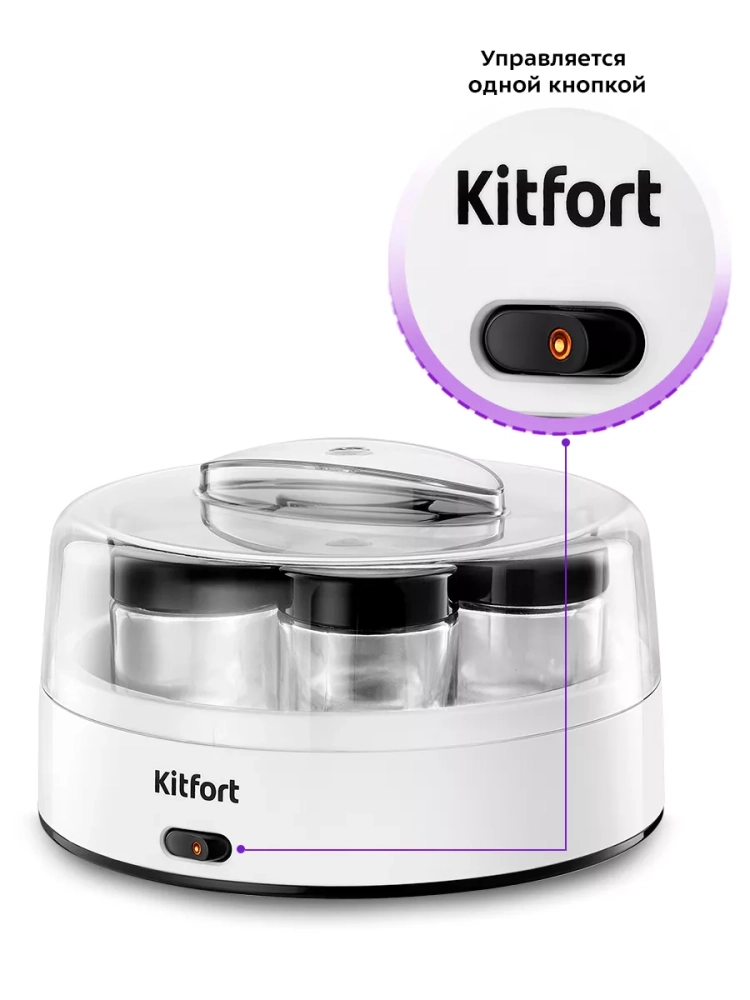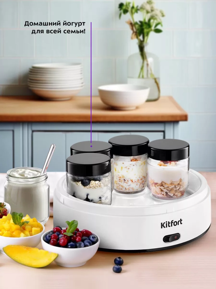 Йогуртница Kitfort КТ-6097 предназначена для приготовления вкусного и полезного домашнего йогурта. Прибор укомплектован 7 стеклянными баночками по 200 мл каждая, в которых готовый йогурт можно хранить в холодильнике. Йогуртница равномерно нагревает баночки с ингредиентами, поддерживая заданную температуру.