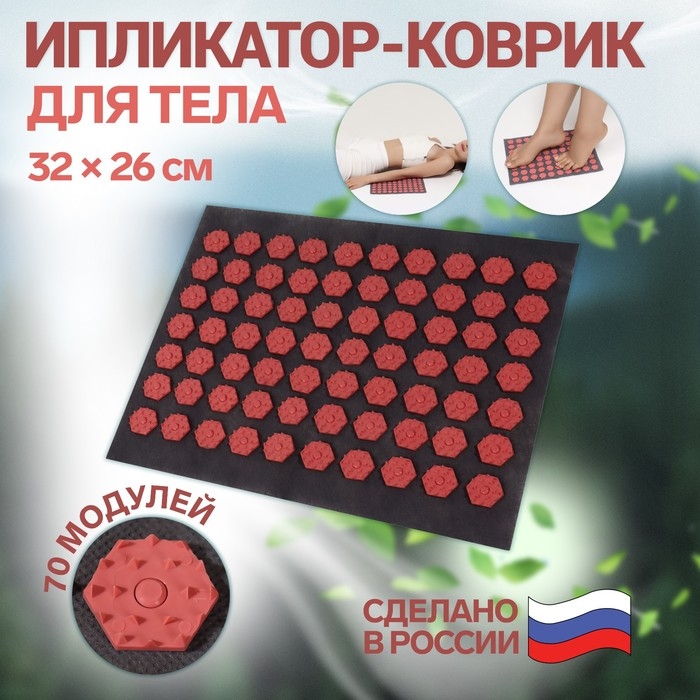 Ипликатор-коврик, основа спанбонд, 70 модулей, 32 × 26 см, цвет тёмно-серый/красный