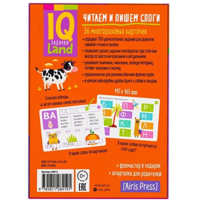 IQ Многоразовые карточки с маркером «Читаем и пишем слоги», 6+