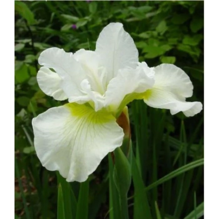 Ирис сибирский – высота растения 80-100 см, листья линейные, заостренные, образующие густой темно-зеленый куст. Цветки фиолетово-синие или светло-фиолетовые. Морозостоек. Цветение июнь.Месторасположение: южных районах ирисы сажают так, чтобы в дневные часы они не оказались на солнцепеке, в северных — на открытых местах. Сибирские ирисы влаголюбивы, но не выносят постоянного переувлажнения. Почва: сибирские ирисы предпочитают плотную, хорошо удерживающую влагу, почвы с реакцией рН 5,5-6,9.Посадка: если предполагается выращивать ирисы на одном месте 6-10 лет, то расстояние при посадке должно быть 60-100 см. Использование: подходят для оформления самых разных видов цветников. Эффектны при посадке группой.Харпсвелл Хэппинесс - высота растения 75 см, цветок белый с желтым центром.