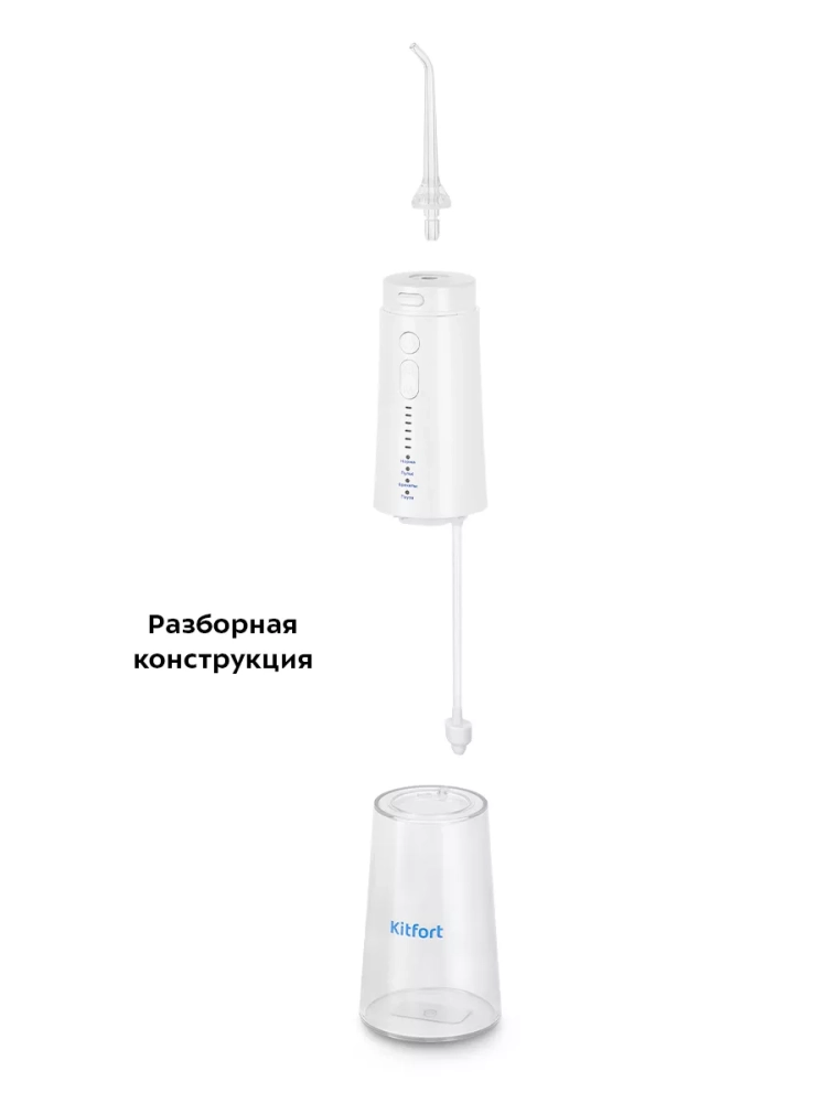 Ирригатор Kitfort KT-2986 — это прибор для ухода за полостью рта. Он очень прост в использовании: налейте воду (или специальный раствор для ирригаторов) в резервуар, выберите подходящий вам режим и начинайте очистку.