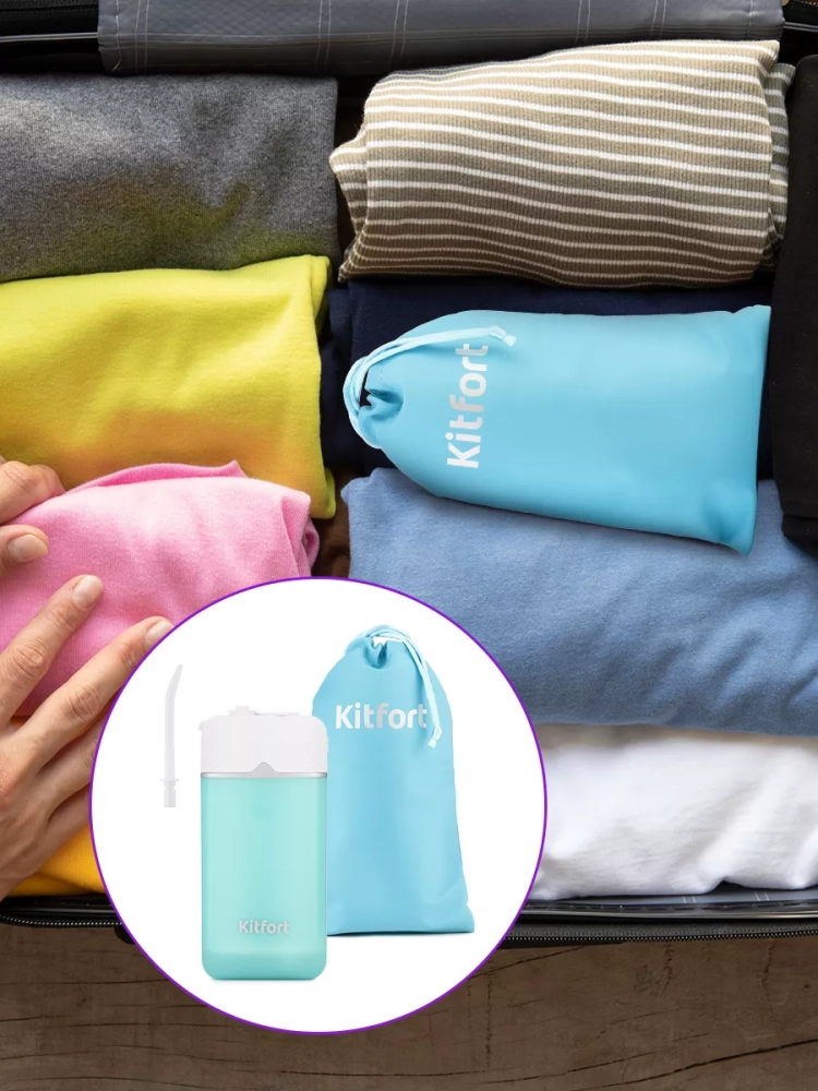Модель Kitfort KT-2906 является портативным ирригатором, его можно брать с собой в путешествия или на работу — он с легкостью поместится в небольшой сумке. Сам ирригатор небольшой и легкий по весу, он разбирается и собирается, прибор вы можете положить в чехол из водонепроницаемой ткани. Чехол идет в комплекте.