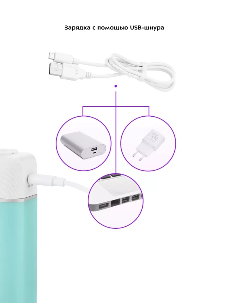 Заряжать прибор с помощью USB-шнура можно от компьютера или через переходник от розетки, который наверняка окажется у вас дома.