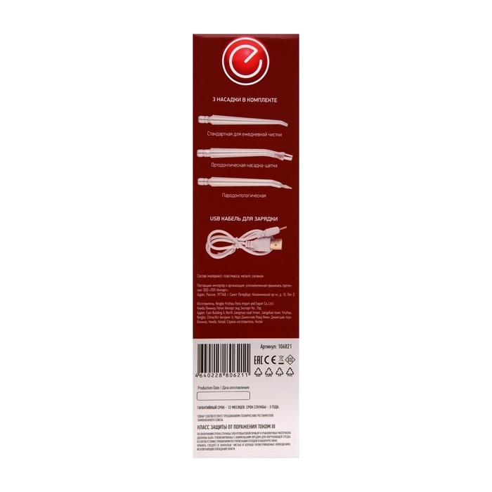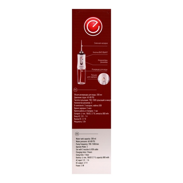 Ирригатор Energy EN-701S, портативный, 200 мл, 3 режима, 3 насадки, АКБ, белый
