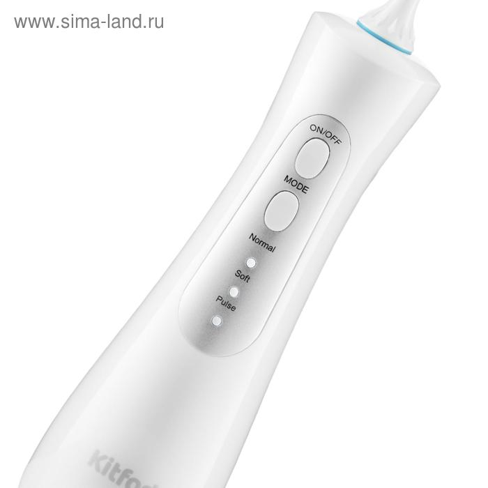 Ирригатор Kitfort КТ-2901, портативный, 5 Вт, 150 мл, 3 режима, 2 насадки, от АКБ, белый