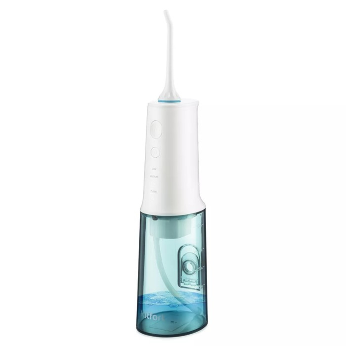 Ирригатор Kitfort КТ-2908, портативный, 5 Вт, 300 мл, 4 режима, 2 насадки, от АКБ, белый
