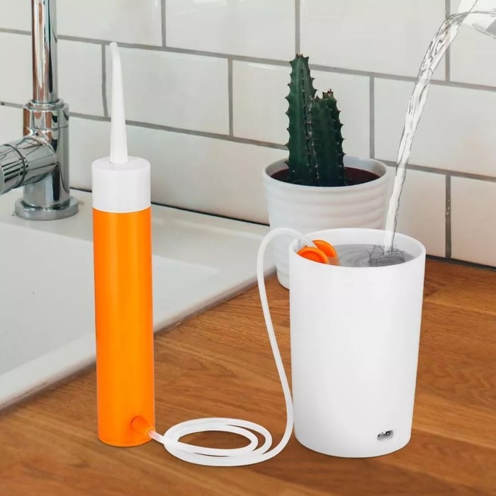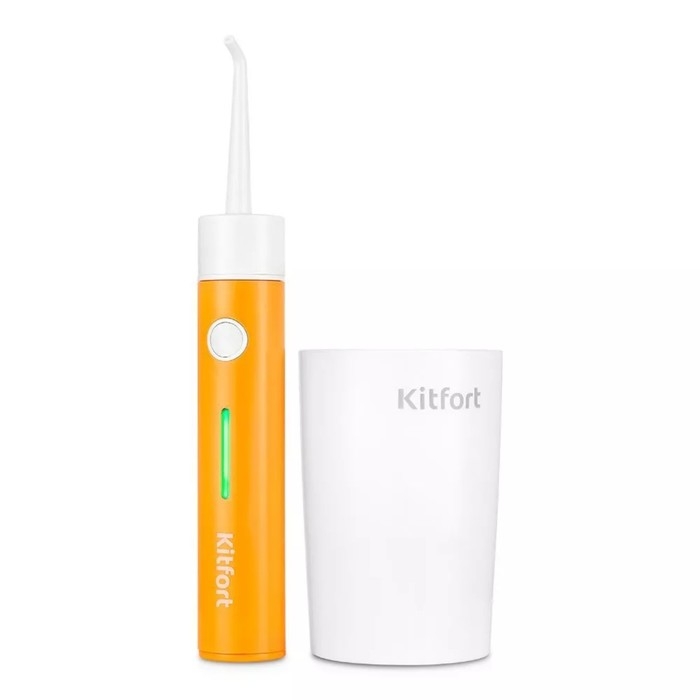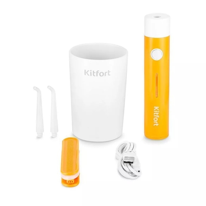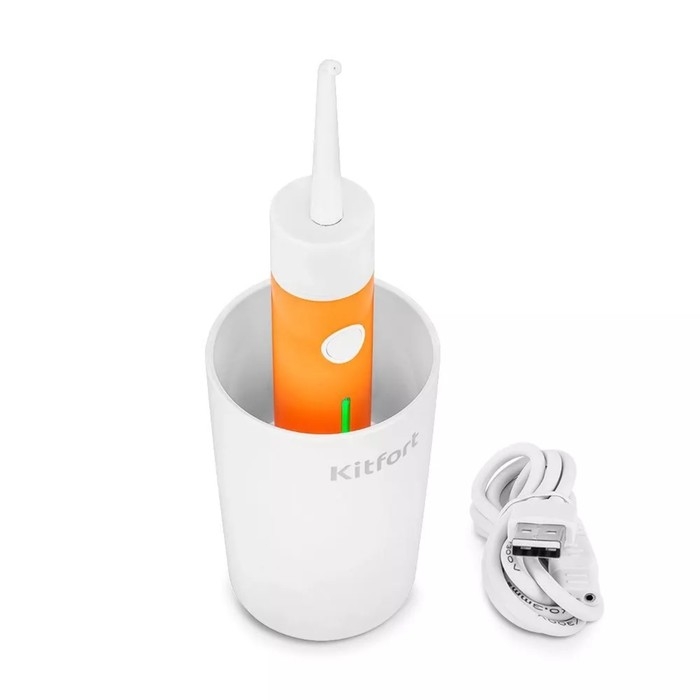 Ирригатор Kitfort КТ-2957-4, портативный, 320 мл, 3 режима, 2 насадки, от АКБ, бело/оранж.