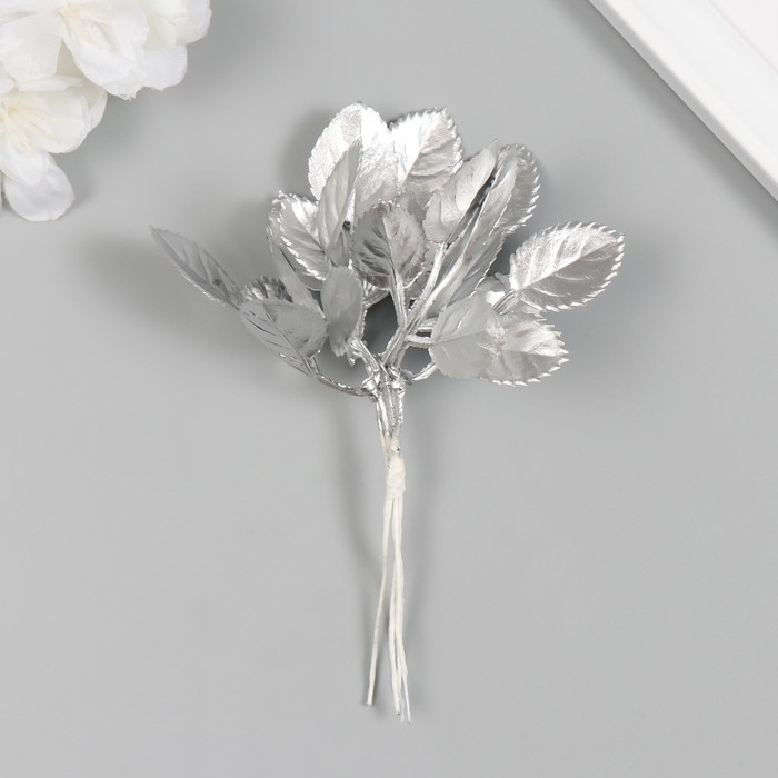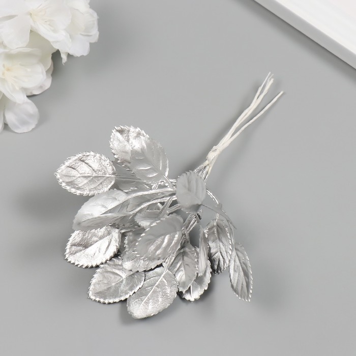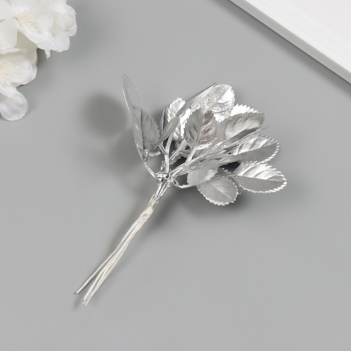 Искусственное растение для творчества "Круглые листья" 1 букет = 6 веточек серебро 13 см