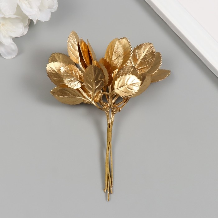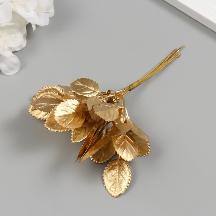 Искусственное растение для творчества "Круглые листья" 1 букет = 6 веточек золото 13 см