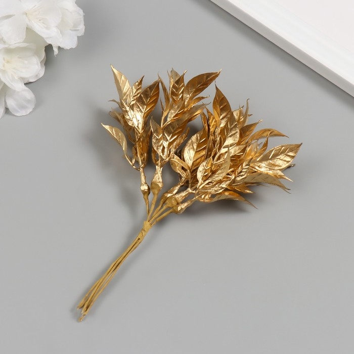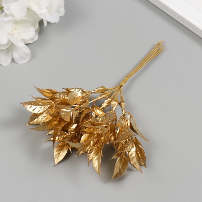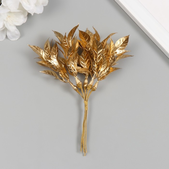 Искусственное растение для творчества "Острые листья" 1 букет = 6 веточек золото 13 см