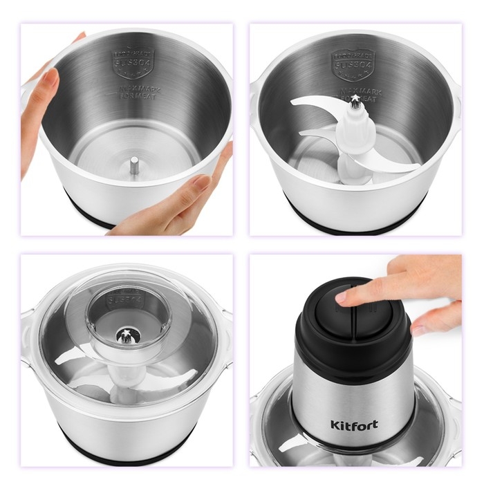 Измельчитель Kitfort КТ-3024, нержавеющая сталь, 350 Вт, 2 л, 2 скорости, сталь