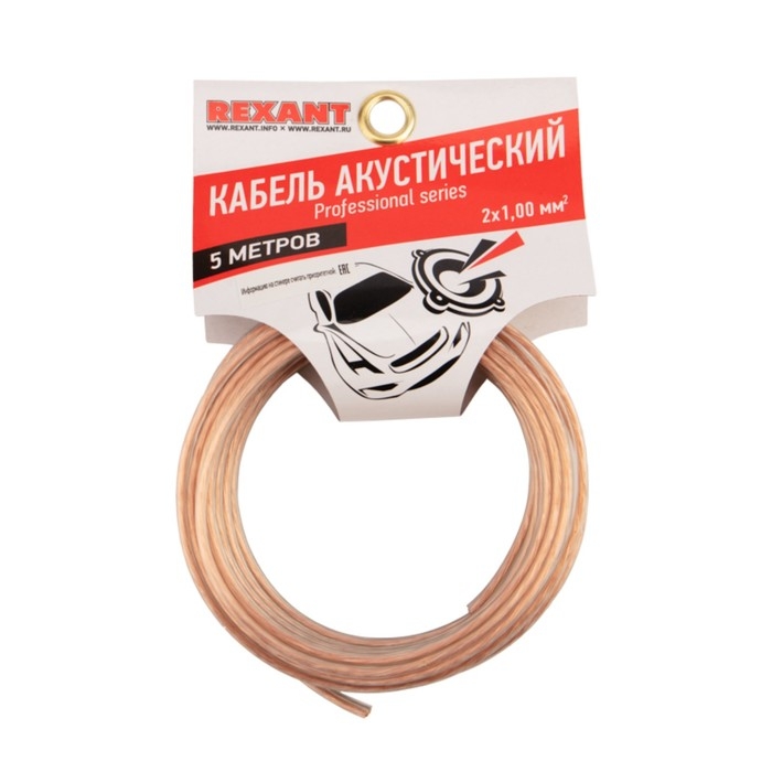 Кабель акустический REXANT SILICON, 2 х 1,00 мм², прозрачный, мини-бухта, 5 м