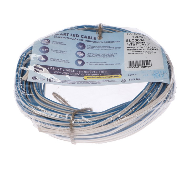 Кабель "Мастер Тока" SLC SWC (NT), сечение 2x0.75 мм2, 20 м, бело-синий