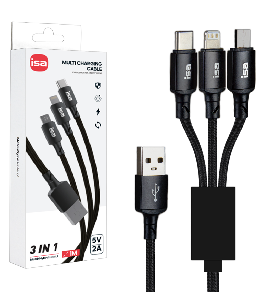 Кабель USB 3 в 1 Lightning + Micro USB + Type-C 1m 5V