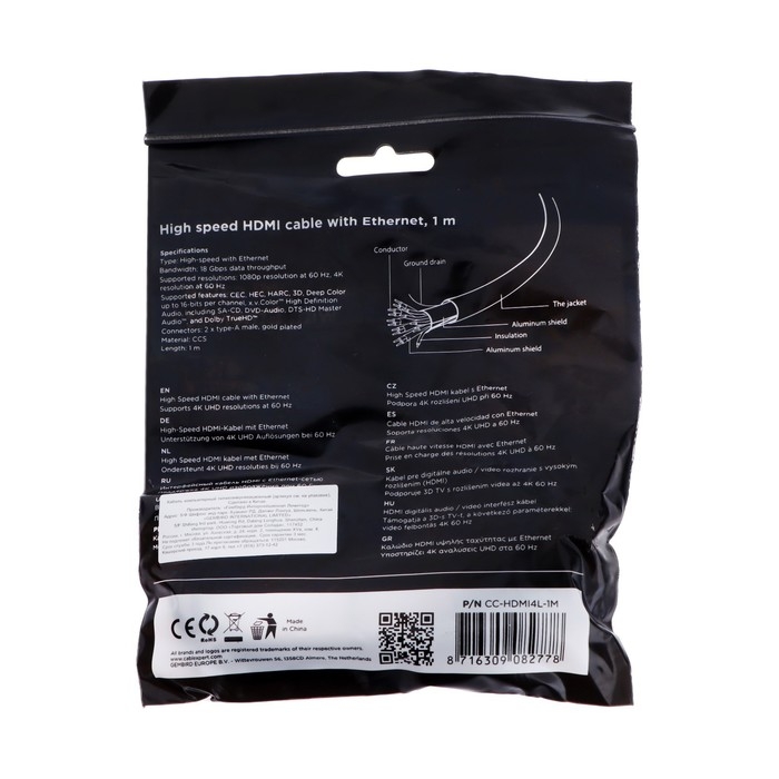 Изделие со спецификацией интерфейса версии 1.4 поддерживает передачу картинки с разрешением 4K, а также 3D-видео. Выводите изображение высокой чёткости с помощью Gembird Cablexpert.