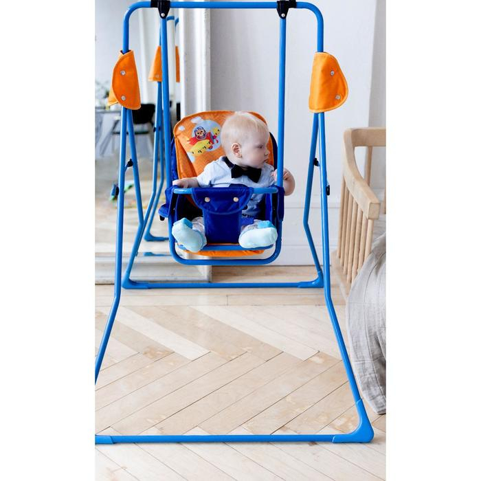 Качели всегда создадут много задора и радости для вашего малыша! Основа - прочный металлический облегченный каркас. Эти качели вы можете разместить где угодно: во дворе, на улице, в квартире или в доме! Механизм крепежа абсолютно прост и надежен. Легко складываются, в сложенном виде занимают мало места.