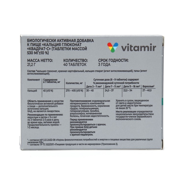 Кальция глюконат ВИТАМИР, 40 таблеток по 500 мг