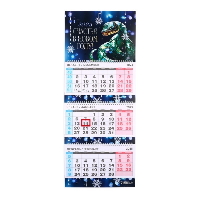 Календарь 2025 настенный, квартальный «Новый год: Счастья в новом году», 29,5 х 73 см, новогодняя серия