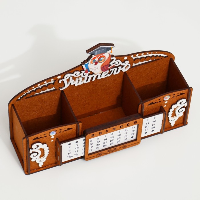 Календарь-карандашница "Учителю" с совой, мдф, дуб, 22х7х14 см