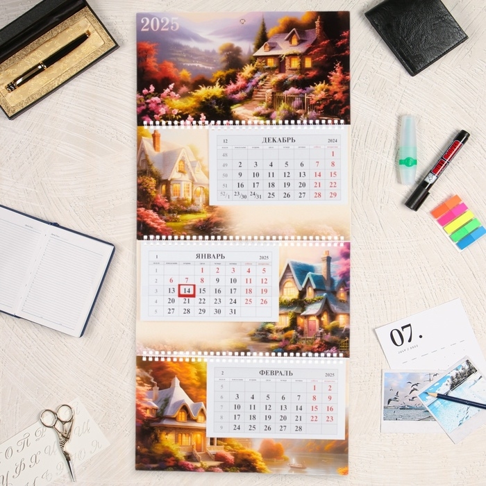 Календарь квартальный трио "Живописный уголок" 2025 год, 29,7 х 65,5 см