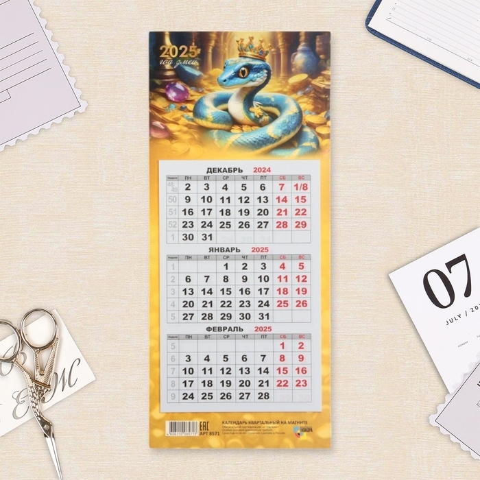 Календарь мини-трио "Символ года - 4" на магните, 2025 год, 24,5 х 11 см