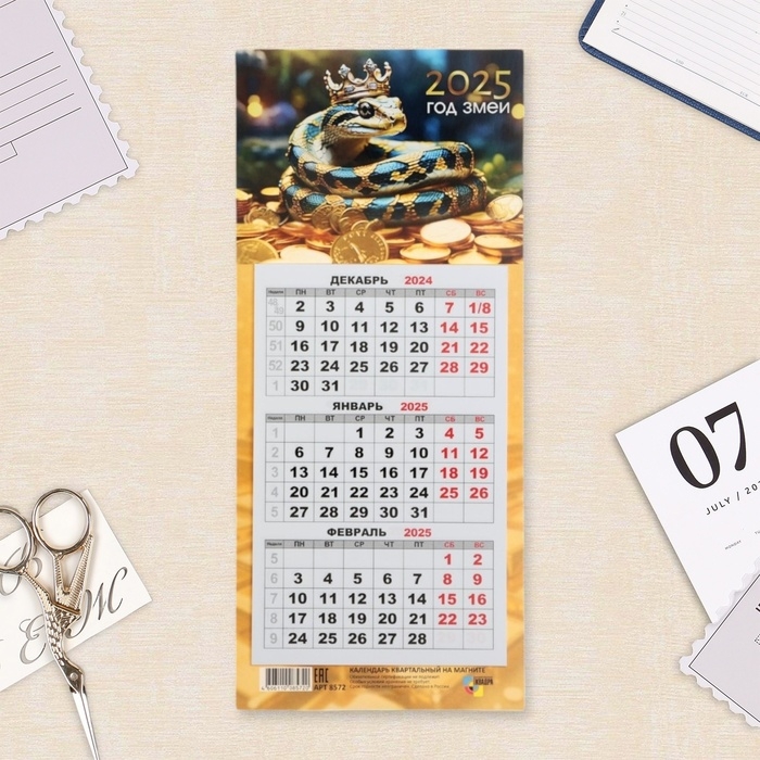 Календарь мини-трио "Символ года - 5" на магните, 2025 год, 24,5 х 11 см