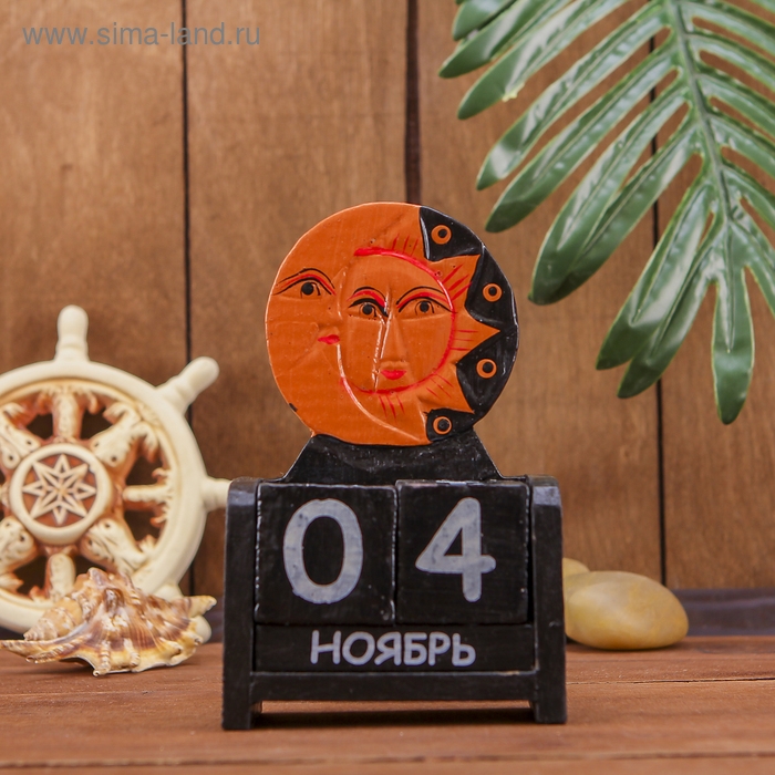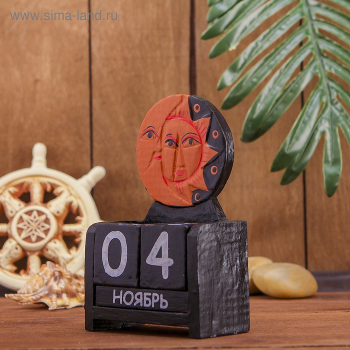 Календарь настольный дерево "Месяц и солнце" 10х5х15 см