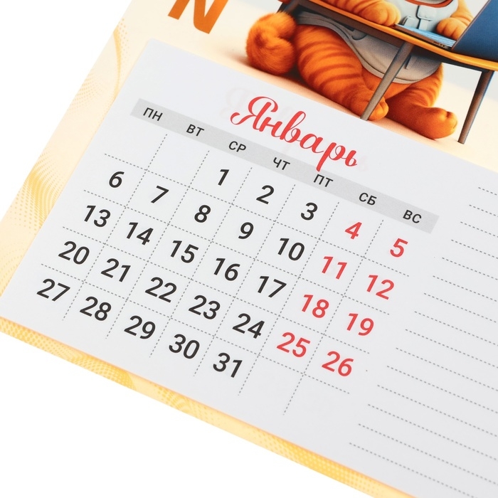 Календарь отрывной на магните "Кот - 2" с блоком для записей, 2025 год, 15 х 20 см