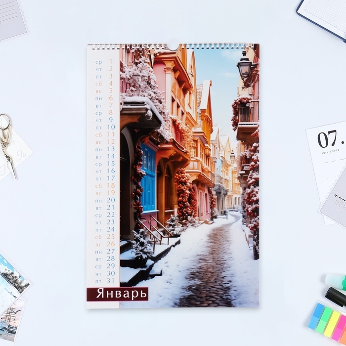 Календарь перекидной на ригеле "Уютные улочки" 2025 год, 30 х 45 см