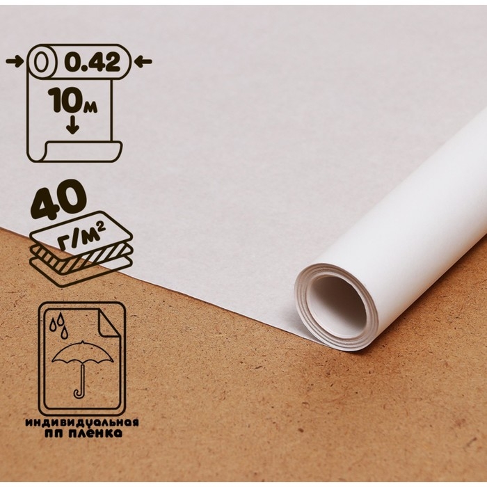 Калька чертёжная под карандаш, ширина 420 мм, в рулоне 10 метров, 40 г/м², в ПП плёнке