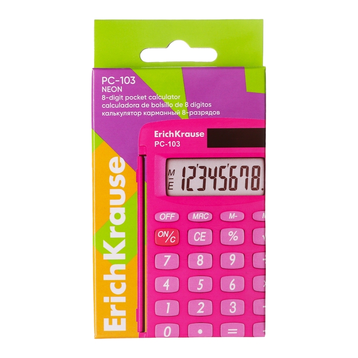 Калькулятор карманный 8-разрядов ErichKrause PC-103 Neon, розовый