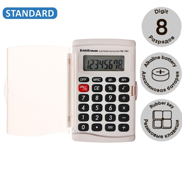 Калькулятор карманный 8-разрядов ErichKrause PC-131 Classic, белый