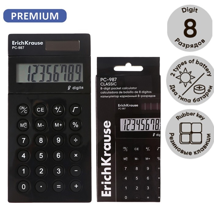 Калькулятор карманный 8-разрядов ErichKrause PC-987 Classic, черный