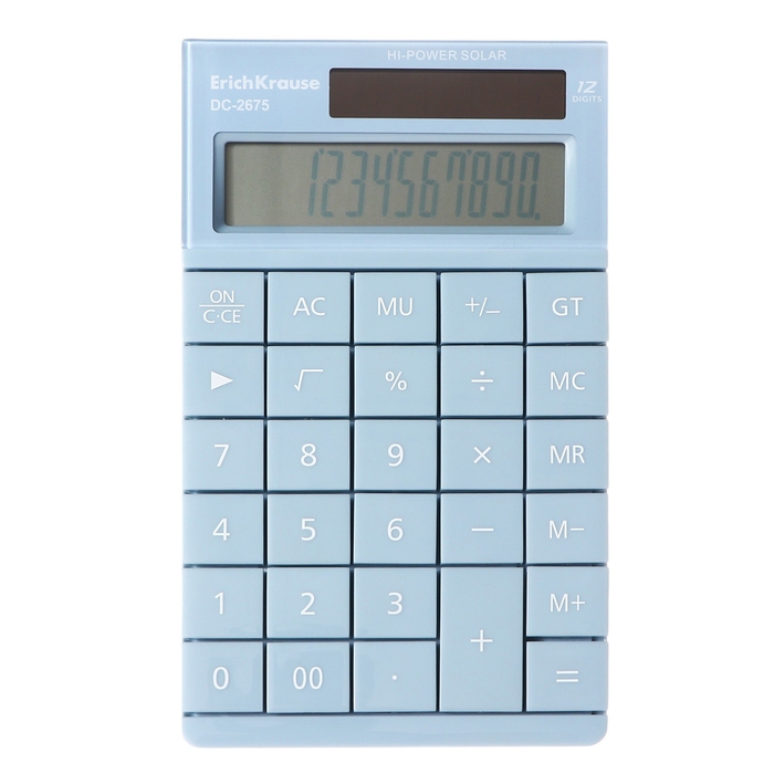 Бухгалтерский калькулятор в пластиковом корпусе с 12-разрядным ЖК - дисплеем. Имеет одноуровневую память. Оптимальный набор вычислительных функций позволяет совершать основные математические операции, рассчитывать проценты, наценку, извлекать квадратный корень, суммировать произведенные операции и запоминать промежуточный результат. Удобная клавиатура снабжена кнопками двойного нуля и удаления последней отображаемой цифры. Для экономии энергии предусмотрены два источника питания: солнечная и алкалиновая батарея, а также функция автоматического выключения.