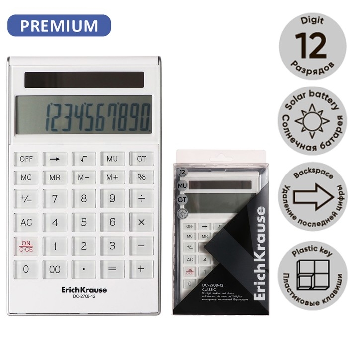 Калькулятор настольный 12-разрядов ErichKrause DC-2708-12 Classic, белый