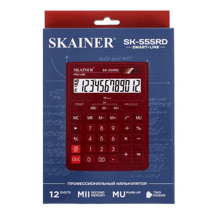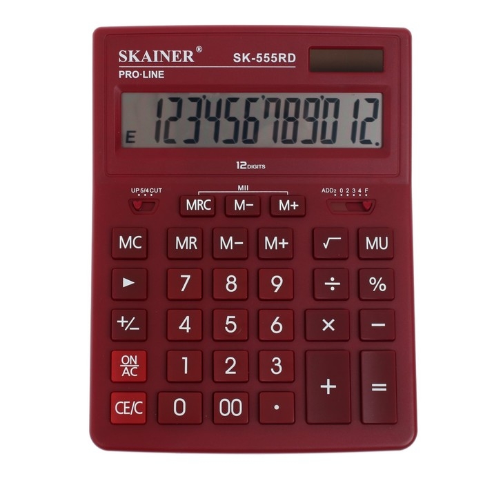Калькулятор настольный большой, 12-разрядный, SKAINER SK-555RD, 2 питание, 2 память, 155 x 205 x 35 мм, красный